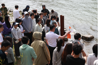 7月17日,师生来到引大入秦工程现场,首先映入眼帘的是由非溢流坝、溢流坝、泄洪冲砂闸、进水闸四项大型水工建筑组成的渠首引水枢纽。据相关人员科普,引大入秦工程是将发源于青海省木里山的大通河水跨流域调入兰州市以北60公里的秦王川地区的一项大型水利工程。工程自1976年开始建设,历时39年,于2023年全面竣工,解决了兰州、白银等地200多万民众的饮用水问题。