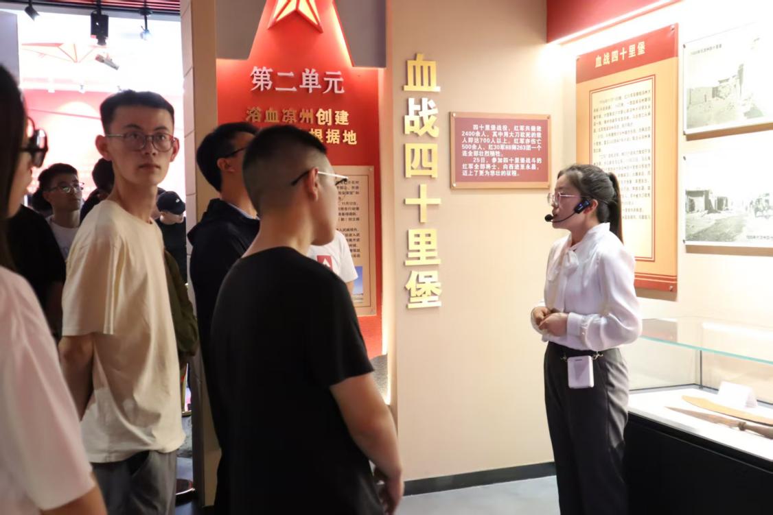在纪念馆内,讲解员引导师生们穿行于各个展区,生动再现了凉州战役的战斗过程及先烈们浴血奋战的英勇事迹。从战役背景的详细介绍到战斗过程的分步解析,从珍贵文物背后故事到先烈们的感人壮举,同学们屏气凝神,认真倾听每一个细节,手中的笔记本不时记录下关键信息,眼神中充满了对革命先辈的崇敬之情。