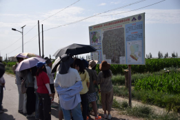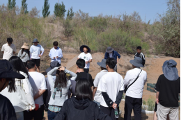此后,前往腾格里沙漠边缘的中国科学院沙坡头沙漠试验研究站,在沙坡头,同学们首先参观了中国科学院沙坡头沙漠研究试验站。试验站的老师向大家详细介绍了研究所的自然地理概况、历史沿革、科研工作以及人才培养等多个方面。