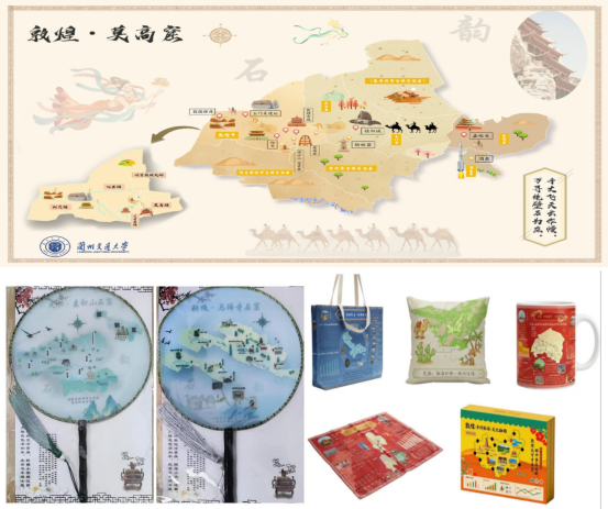 “河西走廊乡村振兴地图文创赋能计划”是团队在国家乡村振兴政策引领下打造的文旅融合项目。项目立足河西走廊丝路枢纽与生态屏障的战略地位,聚焦政府决策可视化、旅游一体化指南、科研教育案例缺失的核心需求,落点生态修复、红色传承、文旅融合、民族团结四大主题,以ArcGIS为核心技术平台,实现乡村地理数据的精准分析与可视化呈现、结合GeoScienceOnline进行地图个性化表达和艺术化设计、Illustrator优化视觉表达等技术方案,构建了1张总图与13张子图的地图体系,搭配丝巾、团扇等文创产品,系统呈现河西走廊地区荒漠治理、红色文旅、丝路融合、多民族共生的乡村振兴成果。