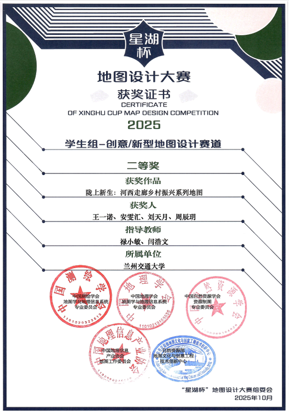 拾光地图创研社成立于2025年,由禄小敏老师牵头创办。作为一个专注于地图文化的交流与创作平台,社团汇聚了一支跨年级的复合型团队,核心成员包括1名博士生、8名硕士生及10名本科生。团队紧密围绕国家战略,深入结合省情民情,致力于将专业地图制图与创意文化产品深度融合,构建了“学术探究-实践创作-成果转化”的闭环育人模式。此次在两条赛道上双双获奖,不仅是对团队成员辛勤付出的最好回报,更是学院长期以来坚持“以赛促教、以赛促创”人才培养理念的生动印证。