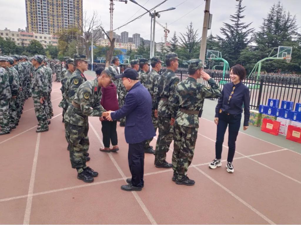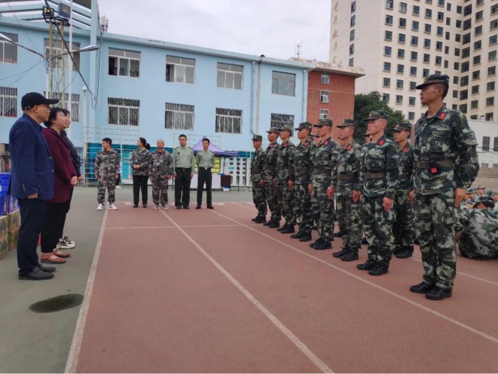 训练场上,参训新生正刻苦操练,他们动作规范整齐,步调一致,口号响亮。经过教官的整队,新生们神采奕奕地站在院领导的面前,大家一个个精神抖擞、身姿挺拔,向院领导展示20级新生集体的精神面貌。随后,老师们表达了对2020级军训教官的关心,赞扬了教官们在训练中所展现出的坚韧不拔的优良品质,希望同学们能好好珍惜训练时光,在接下来的训练过程中以更加严肃认真的态度,最饱满的热情展现出我院学子吃苦耐劳、勇往直前的精神!