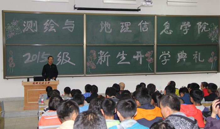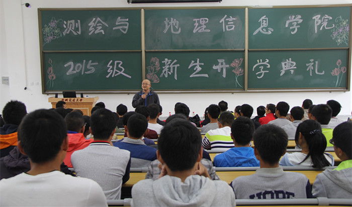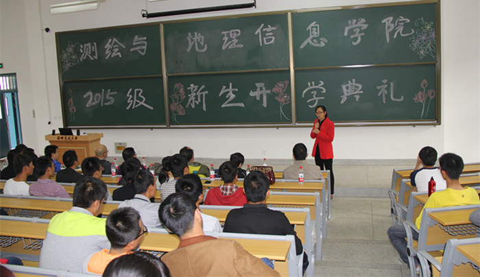 伴随着嘹亮的国歌声,15级新生开学典礼拉开帷幕。闫浩文院长首先致辞,他代表学院向新同学的到来表示热烈的欢迎,并介绍了学院的基本情况,同时希望同学们在未来的四年里,放飞梦想,绽放精彩。随后,遥感系段焕娥老师作为教师代表发言,她鼓励新生满怀热情,坚定信念学好专业知识,以饱满的姿态迎接大学生活。新生代表遥感2015级刘金廷在发言中表示,自己会和同学们一起严于律己,学会学习,学会生活,不辜负学院领导和老师们的期望。测绘2014级吴梦瑶代表在校生发言,她结合自身在校学习生活的经验,建议新生珍惜大学的青春时光,不迷惘不彷徨,找准属于自己的位置,早日形成自我教育、自我服务、自我管理的良好习惯。