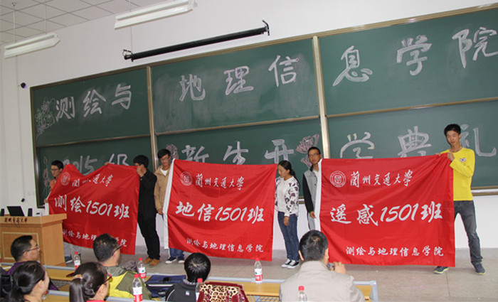 会上,举行了授旗仪式,学院领导向15级各班授予了班旗。