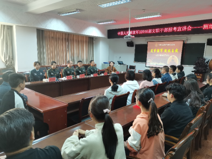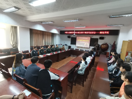 为帮助学院毕业生转变就业观念、拓宽就业渠道、促进毕业生充分就业,3月16日下午15点30分,测地学院在学术厅召开就业指导专题讲座,本次讲座以“筑梦强军 绽放自我”为主题,特别邀请到中国人民解放军战略支援某部政委吴漾、副队长邓基伟、干事葸育功、工程师王婷、文职人员张灵洁、战士王霖出席本次讲座,为同学们介绍军队文职干部招考相关政策,学院党委副书记、副院长郝雪莹,学工办主任王文达及我院40名学生参加讲座。讲座由郝雪莹老师主持。