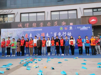 3月27日上午8:30,志愿者们在金牛街参加了“壹基金”联合举办的“让爱来,让碍走”蓝色行动大型公益督导活动。