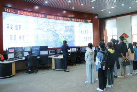 在与全体师生进行座谈,交流了公司目前的运营状况后,浦总带领全体师生参观了公司远程监控中心、党建活动室以及成果展览室。通过参观企业项目沙盘、观看企业宣传片、了解企业项目分布、远程监控职能以及直播连线风光场站等环节,同学们对设备原理及运行方式加深了理解。其中参观公司远程监控中心集控平台时,工作人员向大家全面介绍了风力发电原理、公司新能源项目分布状况以及结合在线平台展示远程数据可视化,更是让大家全方位、全流程感受到远程监控和场站之间密切相关,环环相扣,全体师生切身感受到华电艰苦奋斗、求真务实的企业精神和华电人勇担社会责任的“铁人精神”。