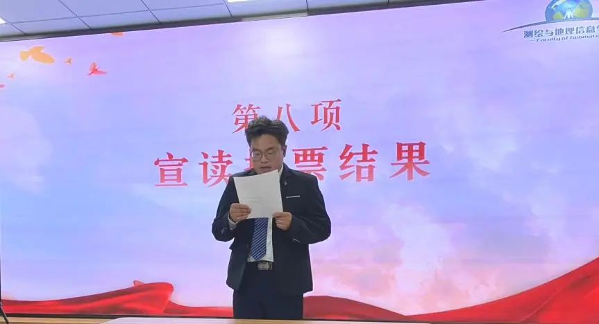 大会宣读了测绘与地理信息学院新一届学生会主席团选举办法以及第十六届学生会主席团候选人的基本情况。由26名学生代表选举产生了第十六届学生会主席团成员。