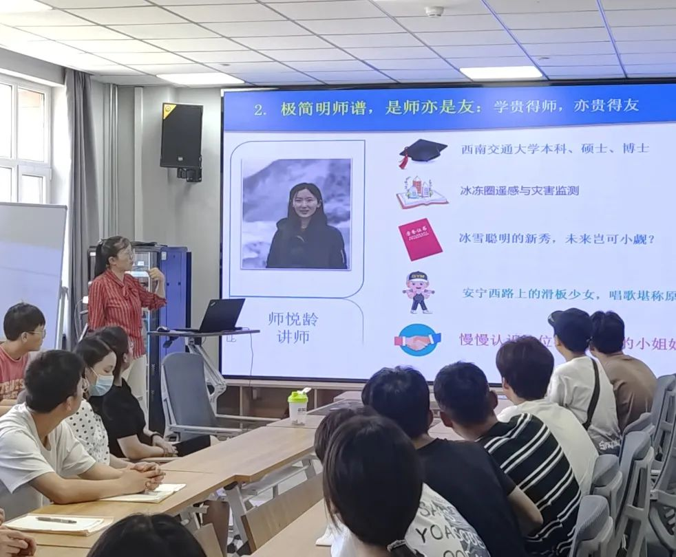 为使同学们在将要开展的“大二导师”双向选择中更好地体现学习兴趣和专长,推进师生开展深入持续地交流合作。遥感2201班主任段焕娥老师以简洁风趣的语言,活泼生动的课件,展示了遥感系全体教师的教育经历、科研方向、荣誉成果、兴趣爱好、学生印象等,同学们从而对遥感专业的教师团队有了初步的全面认识。