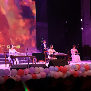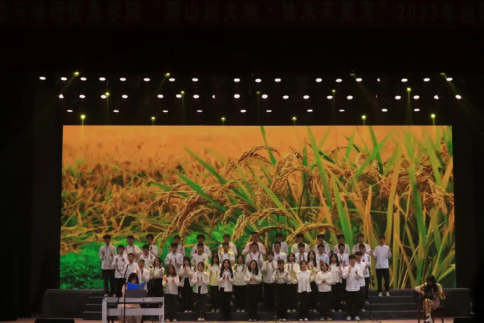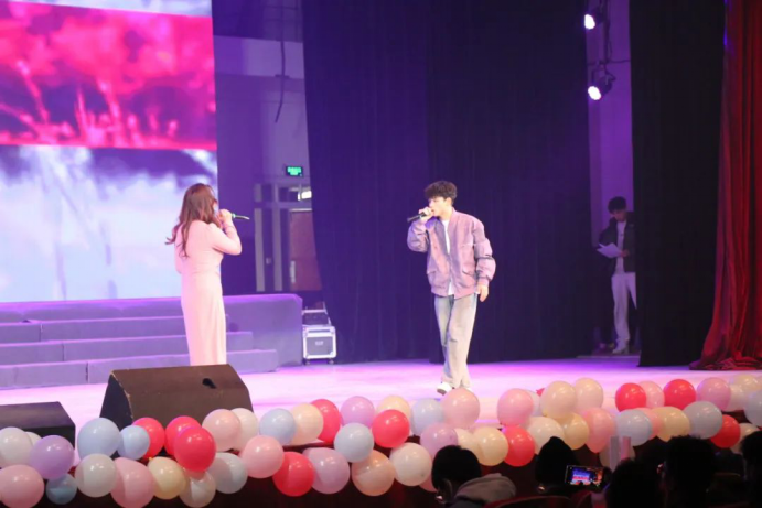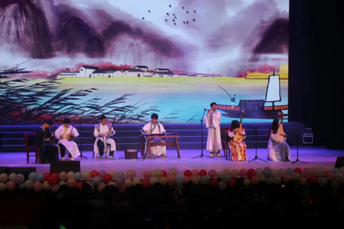 晚会以一段创新视频启动,全面展示了学院的历史发展、学科优势、师资实力以及学生风貌,深化了新生对学院的认识。视频中融入了毕业学长学姐的祝福,传递出学院的温馨与关怀。本场晚会通过器乐演奏、歌曲、说唱、舞蹈、诗朗诵等多种艺术表现形式,充分展现了学院的多元文化和艺术气息,为师生呈现了一场视听盛宴。