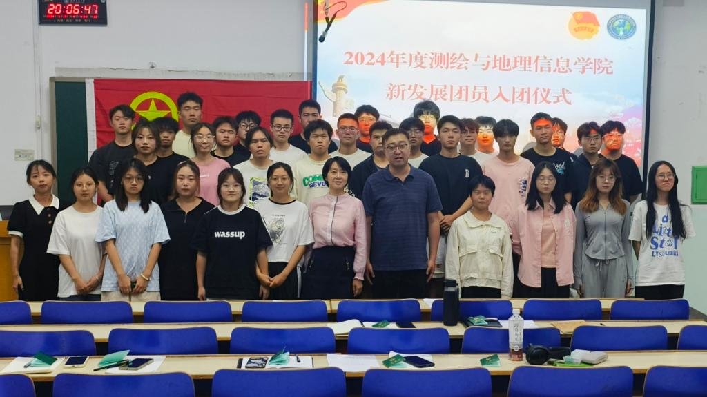 5月30日,测绘与地理信息学院于第七教学楼1802教室成功举行了2024年新发展团员入团仪式。测绘与地理信息学院党委副书记副院长郝雪莹、团委书记王博、2024年新发展团员和优秀团员代表等40余人参与本次仪式。