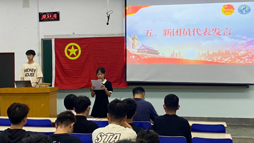 新发展团员代表颜翊成同学表示,将坚定不移听党话、跟党走,立志做有理想、敢担当、能吃苦、肯奋斗的新时代好青年;优秀团员代表刘宇桐同学表示,成为一名共青团员,意味着不仅要在组织上入团,今后更要在思想上入团,在行动上真正入团,做到时时处处严格要求自己,时时处处起到模范带头作用。