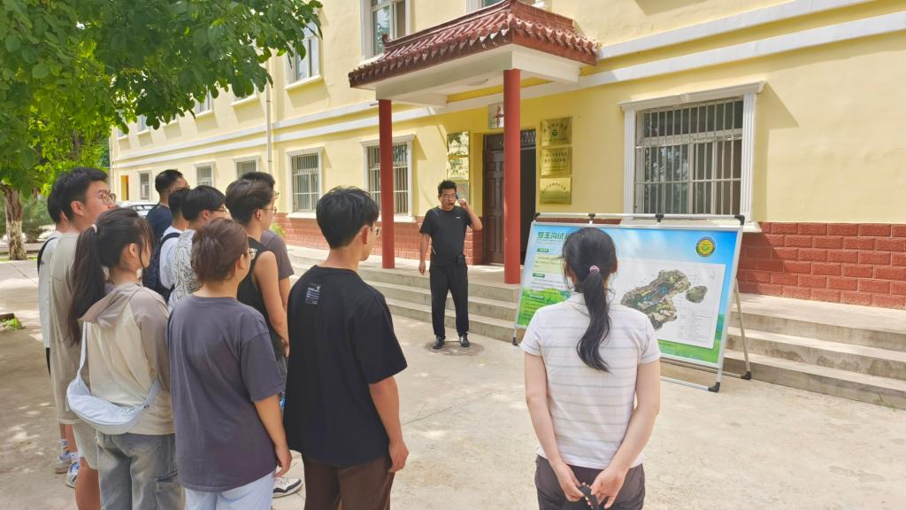 下午,实践团成员来到了位于天水市北郊罗玉沟流域的桥子东沟上游的黄委天水局罗玉沟试验场。它的平均海拔高度约1445米,是开展黄土丘陵沟壑区第三副区水土流失规律试验研究的基地,也是开展水土保持技术推广的场所,更是我国最早开展水土保持试验研究的地方。