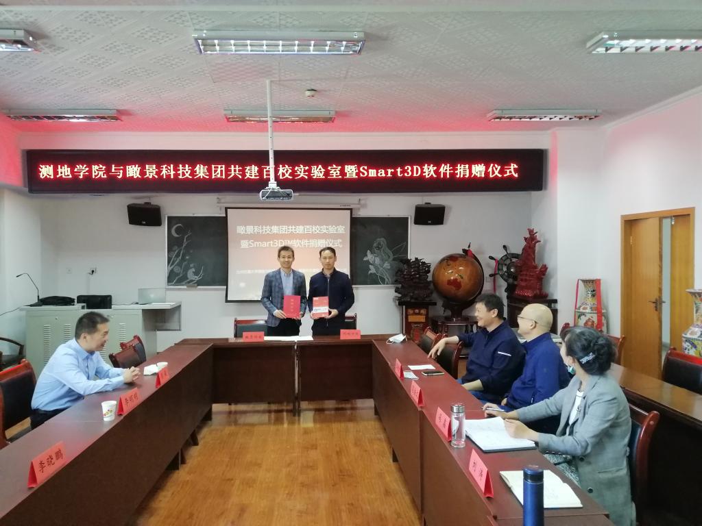 5月11日,兰州交通大学测绘与地理信息学院和瞰景科技发展(上海)有限公司共建实景三维联合实验室暨Smart3D软件捐赠仪式在学院学术厅举行。学院院长闫浩文、学院党委书记冯鑫、副院长刘涛、地理国情监测技术应用国家地方联合工程研究中心副主任王世杰,瞰景科技发展(上海)有限公司的副总经理李明明、吴俊、甘肃全球鹰数码有限公司总经理李晓鹏,以及10余名学院专业相关老师参加了捐赠仪式,仪式由冯鑫书记主持。