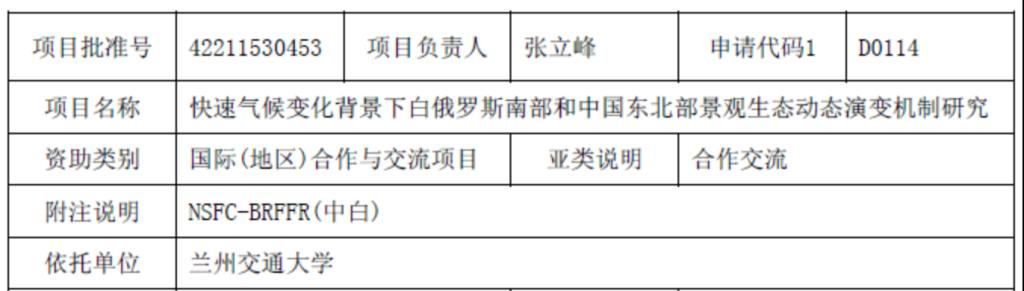 近日,国家自然科学基金委公布了2022年国际(地区)合作与交流项目评审结果,学院张立峰副教授作为中方负责人主持的“快速气候变化背景下白俄罗斯南部和中国东北部景观生态动态演变机制研究”获得基金资助。具体信息如下: